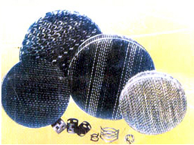 規整填料分為網孔、絲網、孔板、壓延孔板等。散堆填料主要有:金屬鮑爾環填料、金屬階梯環填料、金屬環矩鞍即金屬英特洛斯填料。